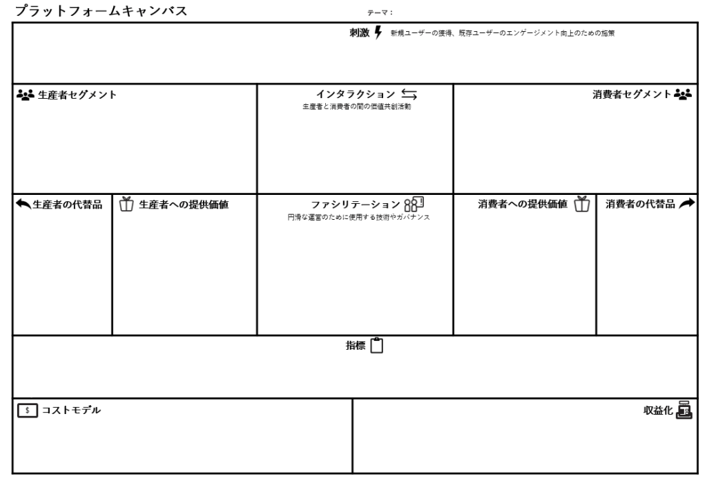 プラットフォームキャンバスにおいて特徴的な3要素(インタラクション、ファシリテーション、刺激)についてご紹介しました。
