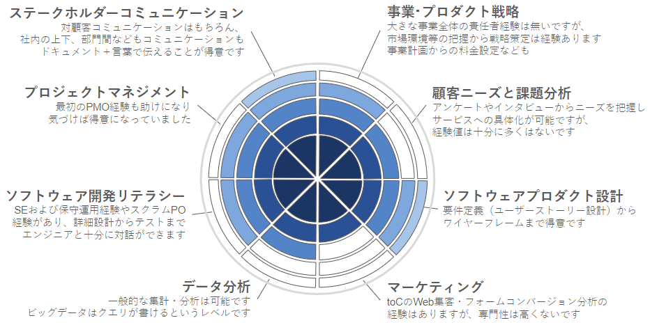 これまで十分に経験があり、自分でも得意だと感じるスキルを図にしてみました。